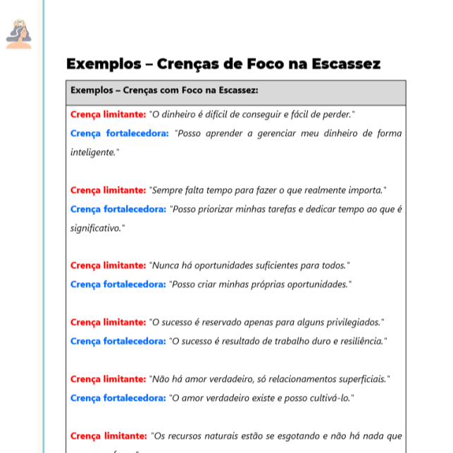 Pensando em resolver esse problema, desenvolvemos um e-book que é o seu guia prático para construir crenças fortalecedoras. Esqueça materiais extensos e complexos.